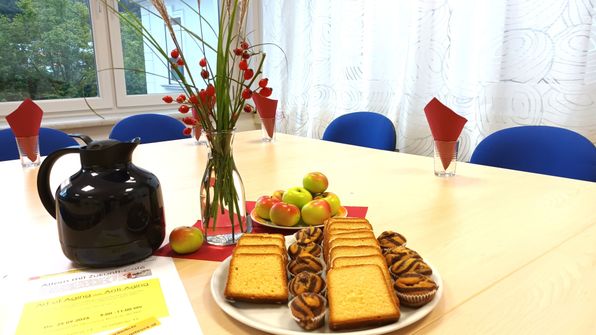Hund Herbert, der liebenswerte Assistenzhund, ließ sich geduldig knuddeln und unsere netten "Raumgastgeber" verwöhnten Groß und Klein mit köstlicher warmer Jause, Getränken, Kuchen und Obst. Herzlichen Dank für diese freundliche und großzügige Unterstützung.